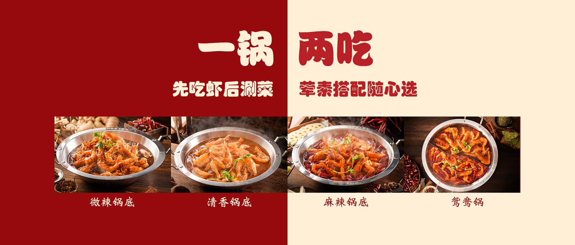 邵匯大蝦擁有強(qiáng)大的后勤保障部門,核心底料由公司中央工廠集中配送,食材精選進(jìn)口大蝦,搭配秘制底料制作而成,研發(fā)出一鍋兩吃的飲食模式(先吃蝦后涮菜,葷素搭配隨心選),打造出綠色健康的飲食新文化。